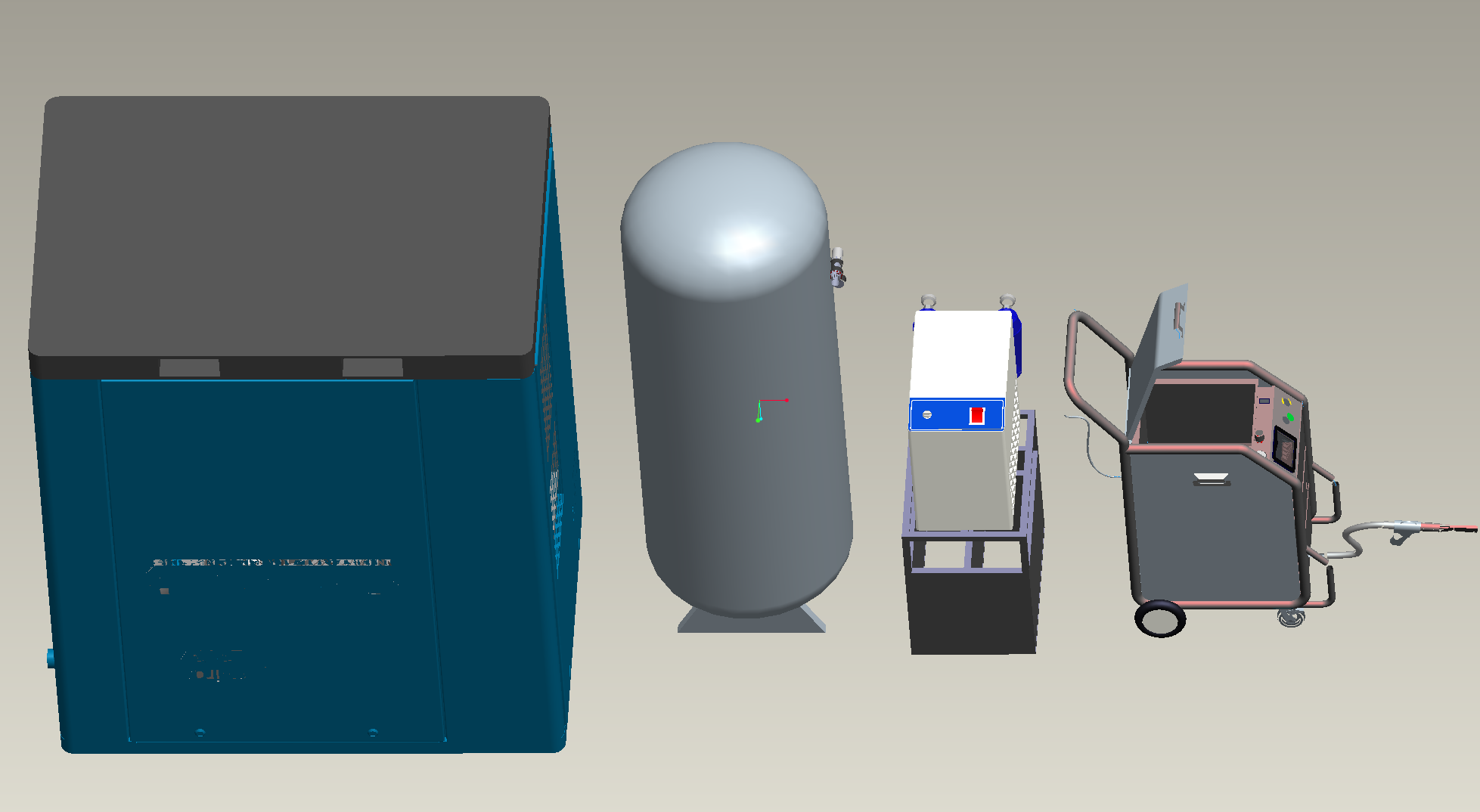 制气区:空压机(7.5kw,1.0m³/min)、储气罐(0.3-0.6m³)、冷干机